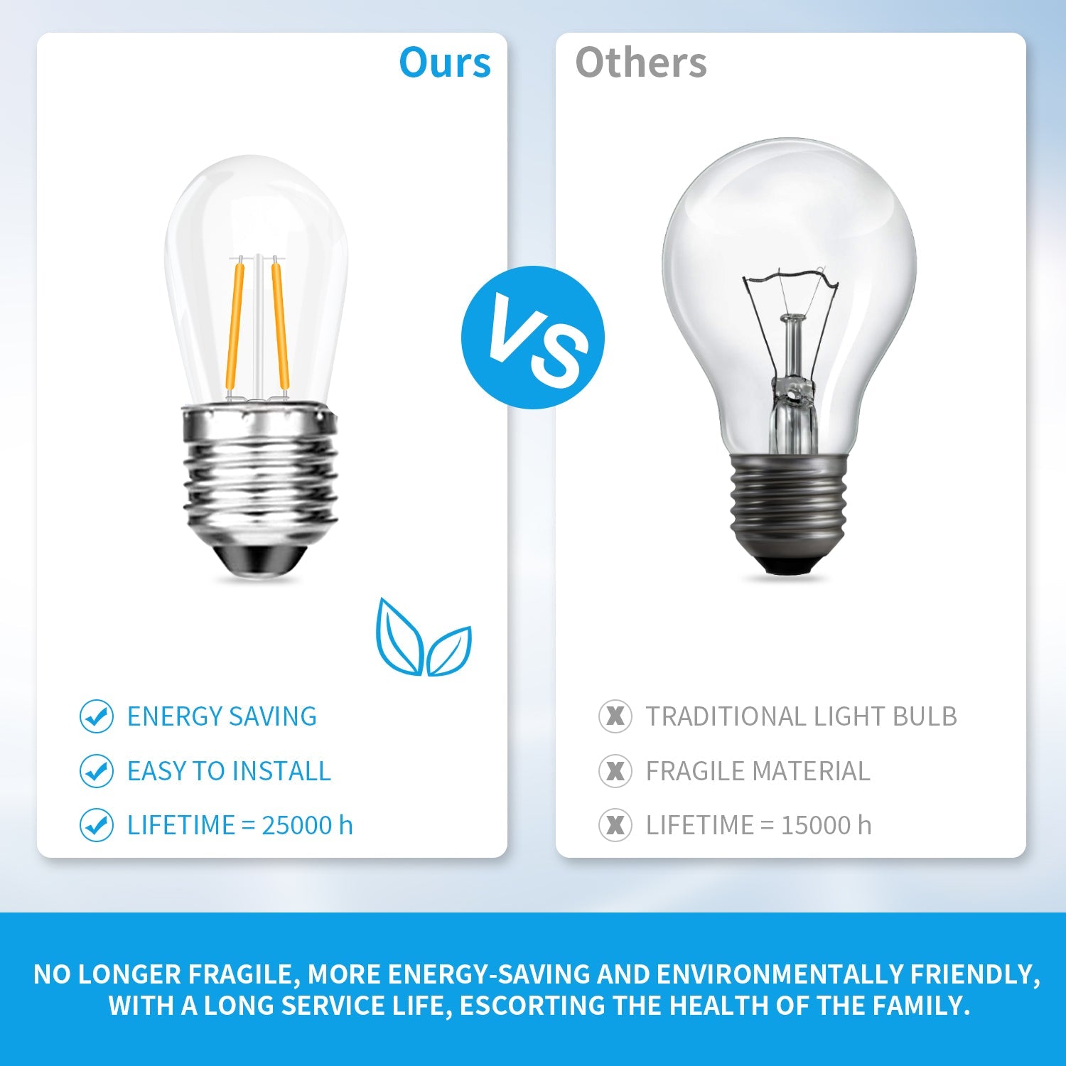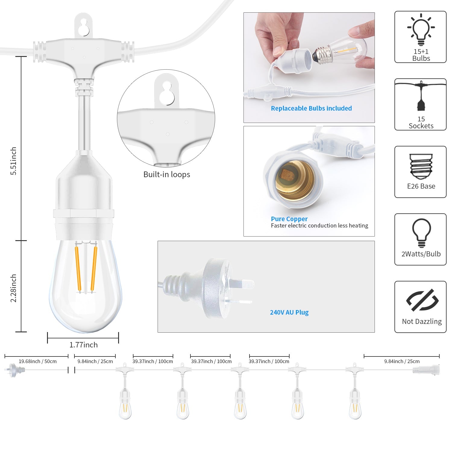 - ✔ 1 × 15m (48ft) LED Festoon String Light with 15 Bulbs