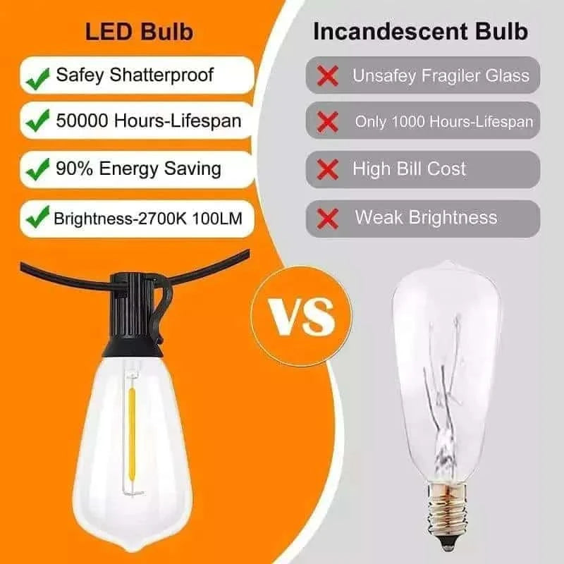 🌟 50ft Outdoor String Lights – Bright, Safe & Weatherproof