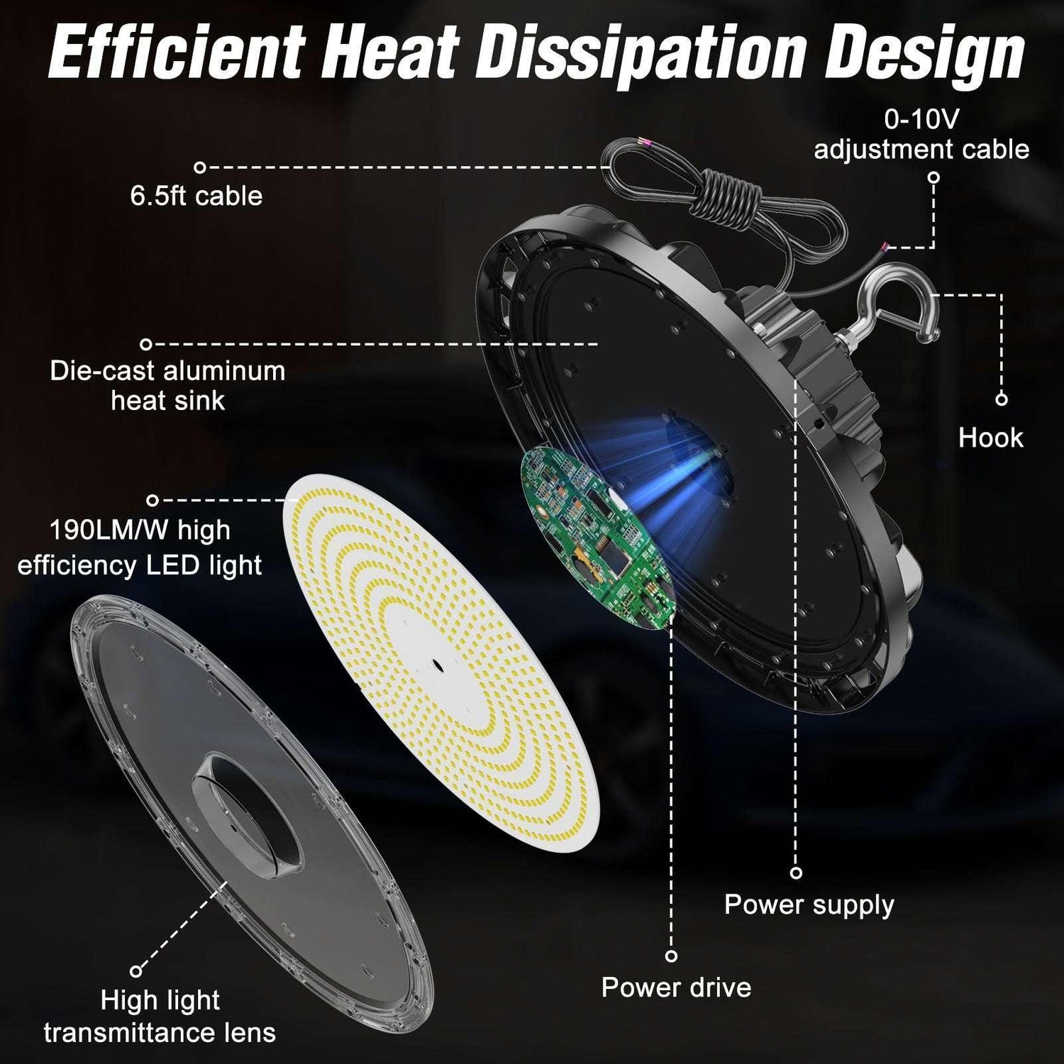 - ✔️ Diameter: 11.22 in. for 150W/200W, 12.6 in. for 240W – Suitable for various high-ceiling installations.